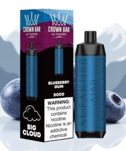 Al Fakher Crown Bar 8000 Crystal Wegwerp Vape Bosbessen Kauwgom met 18ml vloeistof en 8000 puff