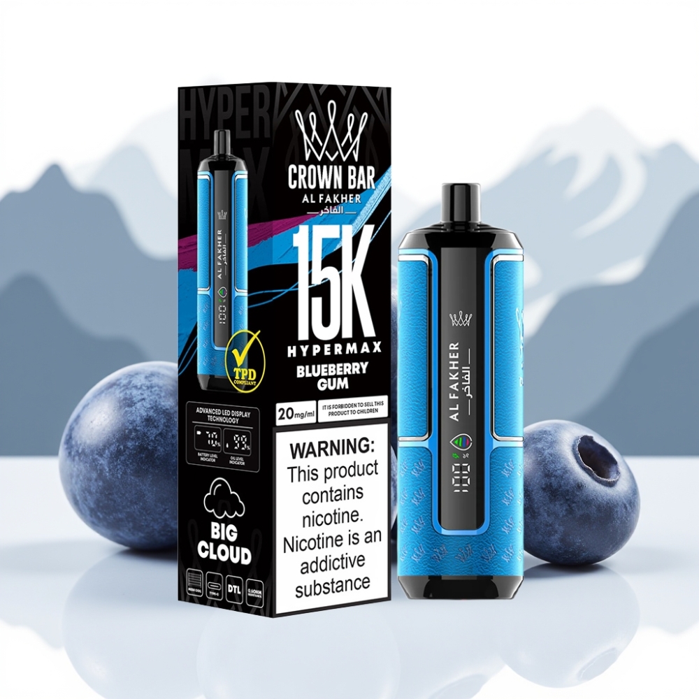 Al Fakher Crown Bar 15K Hypermax Wegwerp Vape Kit Blauwe Bessen Kauwgom 22ml
