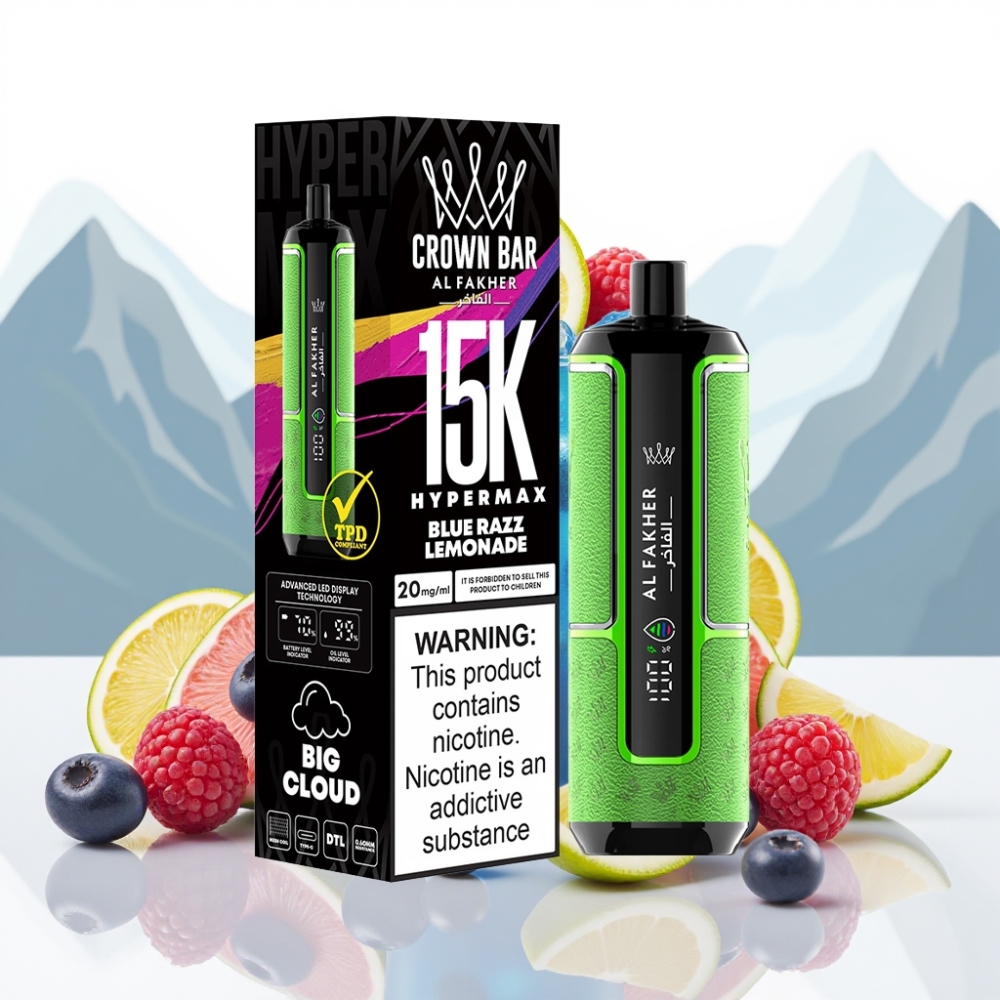 Al Fakher Crown Bar 15K Hypermax Wegwerp Vape Kit Blauwe Framboos Limonade 22ml 600mAh