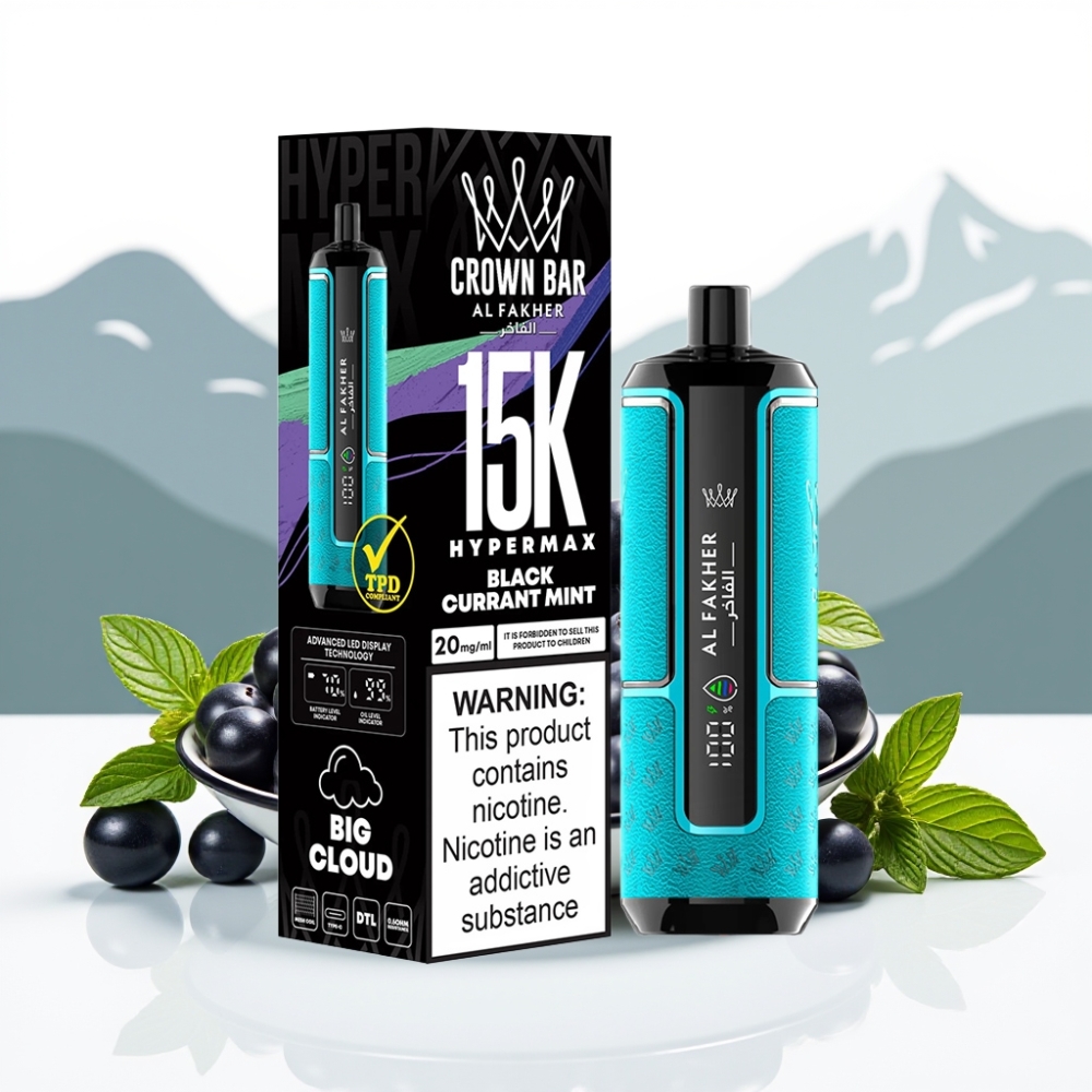 Al Fakher Crown Bar 15K Hypermax Wegwerp Vape Kit Zwarte Bes Munt 22ml 600mAh