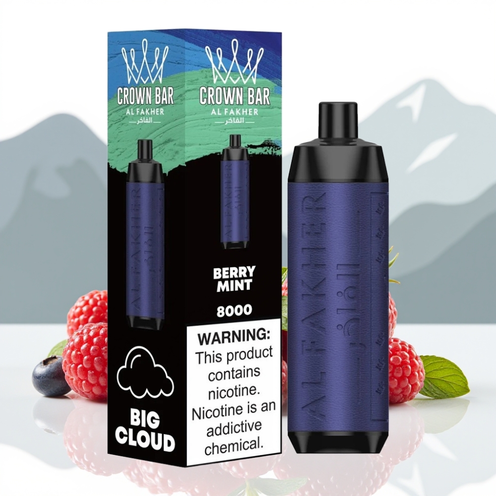 Al Fakher Crown Bar 8000 Crystal Wegwerp Vape Bes Munt met 18ml vloeistof en 8000 puffjes
