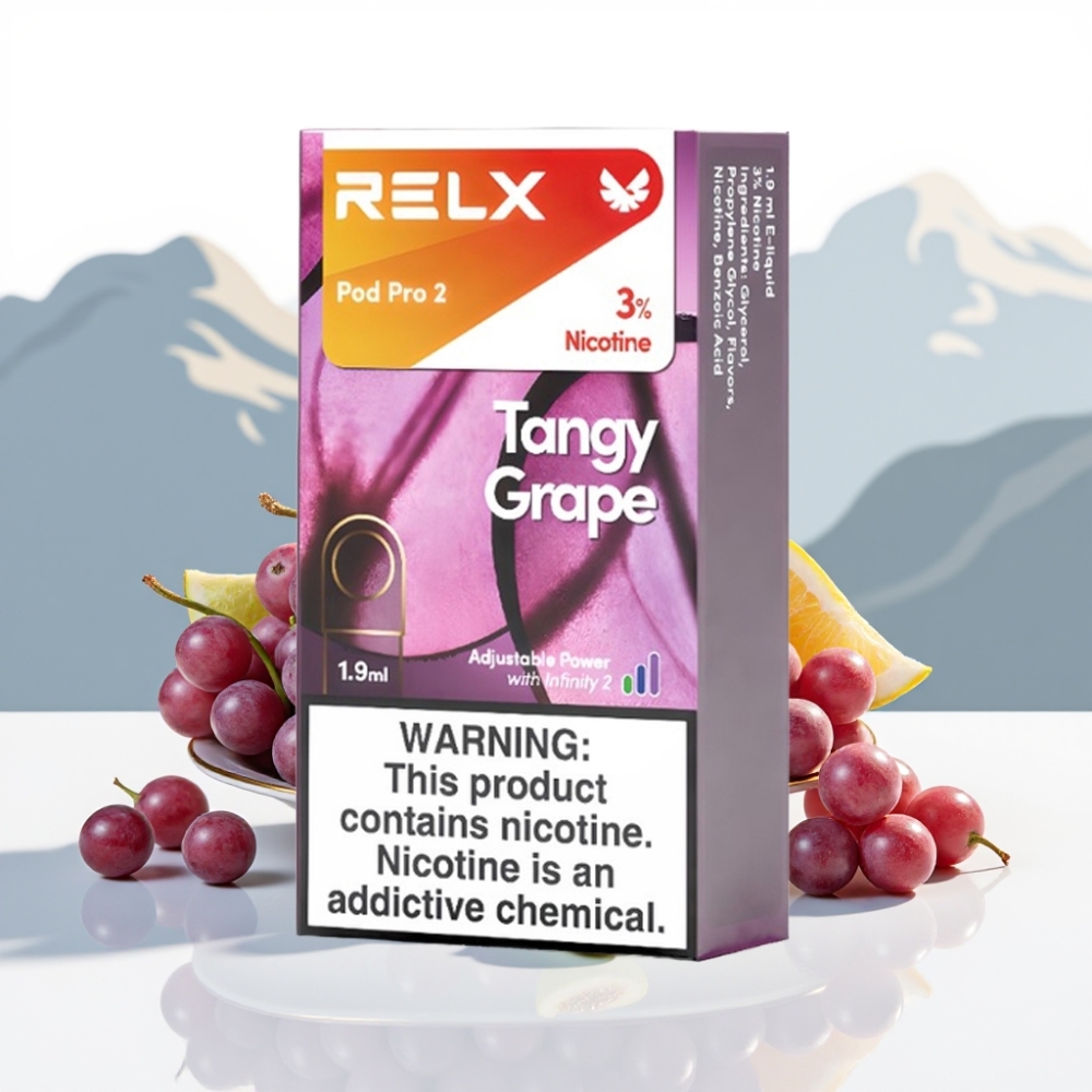 RELX Pod Pro 2 Vape-apparaat met 3% Nicotine en Zure Druif, 600 puffen, 1.9ml